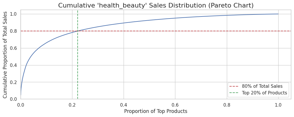top3_sales_category Health & Beauty제품군의 전체 매출에서 각 제품이 차지하는 비중을 확인했습니다.- 여기서 상위 20% 상품이 매출의 80%를 차지하는 파레토 법칙을 확인하였으며, 소수의 핵심 상품 관리가 매출에 결정적임을 도출하였습니다.