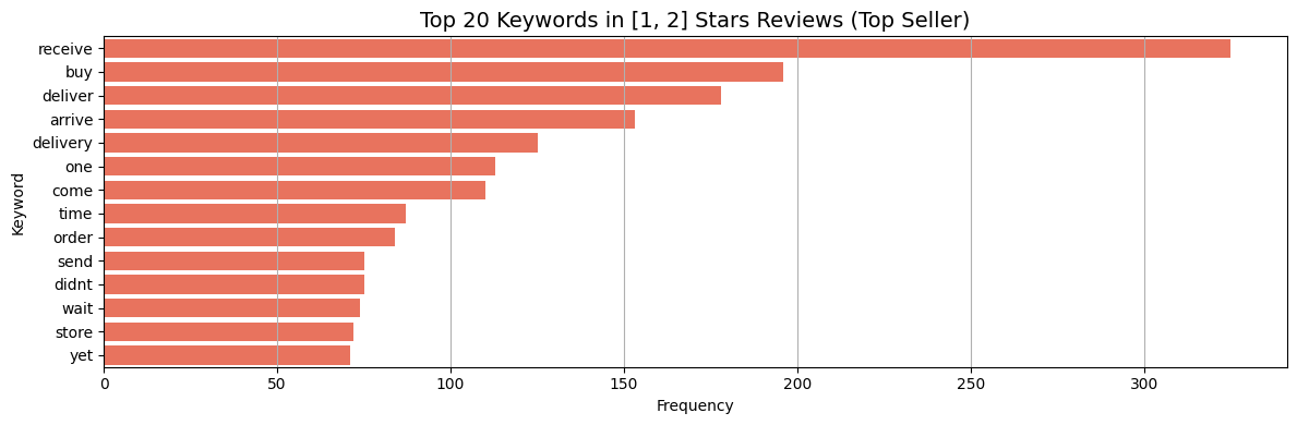 - 고객 리뷰 분석 결과, 평점 1-2점의 부정 리뷰에서 배송 지연이 주요 키워드로 나타났습니다.